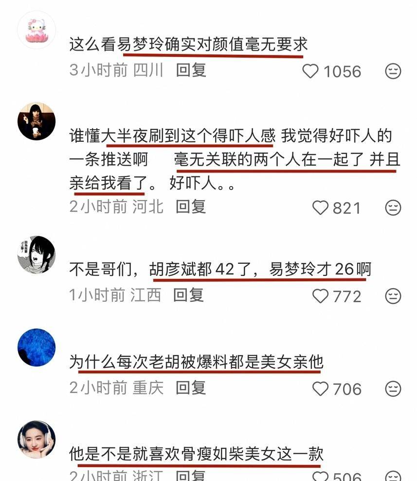 在社交平台,调侃和祝福各占一半,最热的一句是“为什么每次老胡被拍,都是美女主动亲他”